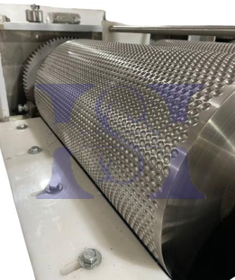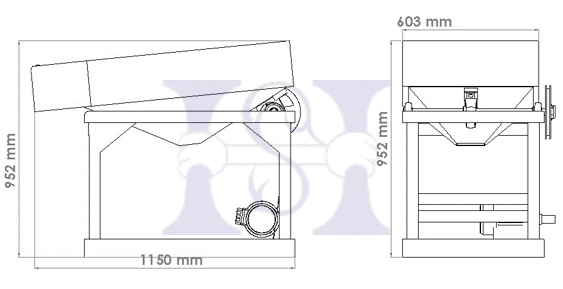 A chocolate sieve for sifting hazelnuts, almonds, pistachios, and similar items, made of stainless steel and equipped with a motor and tank.